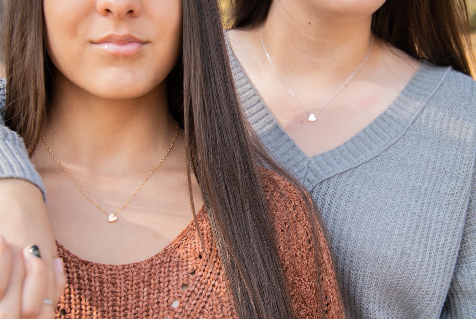 sterling silver heart necklaces for grandmother, mother and daughter.